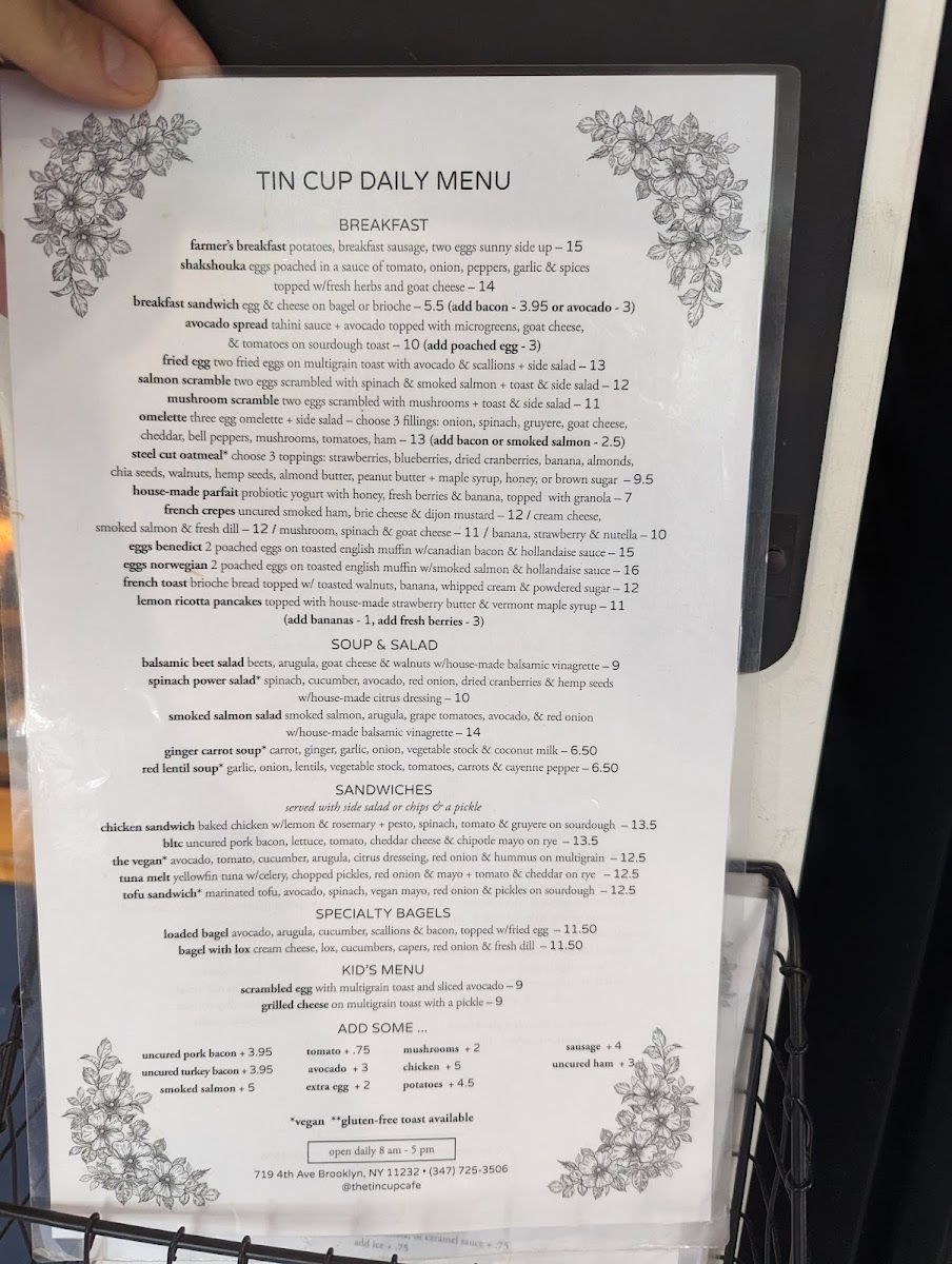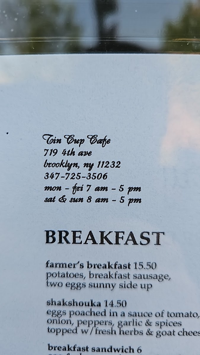 Tin cup cafe Menu
